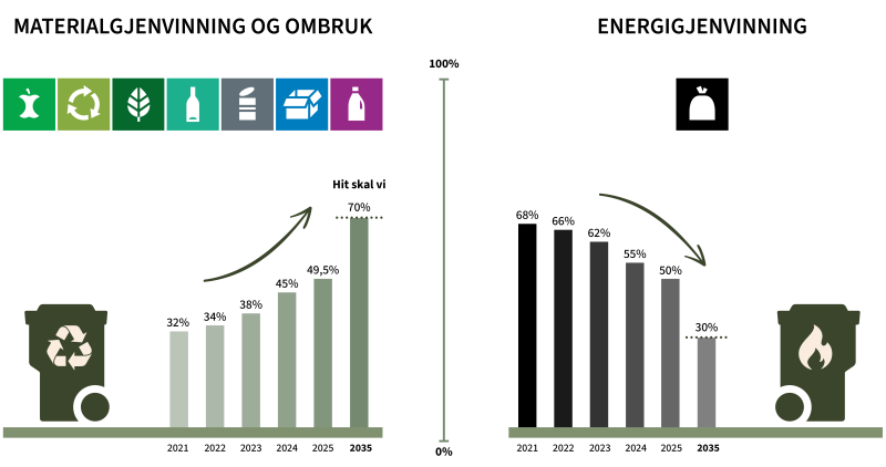 Vi sender stadig mer til materialgjenvinning, og mindre restavfall til energigjenvinning.