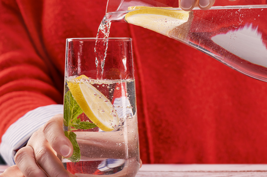 Server vann med sitron/appelsin/bær/friske urter. Juice kan smake sterkt Prøv å bland den ut med 50% vann. Det er bra for deg og lommeboka.