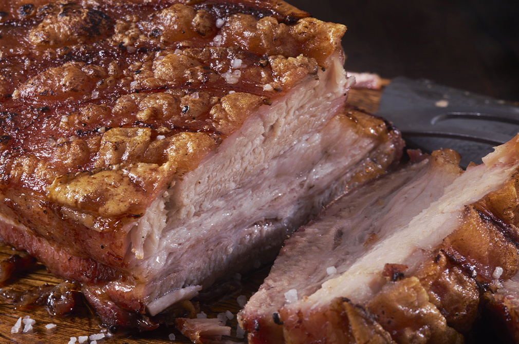 Ribbe, medister og pølse til én person: Ribbe 350 gram, medister 80 gram, pølse 80 gram.