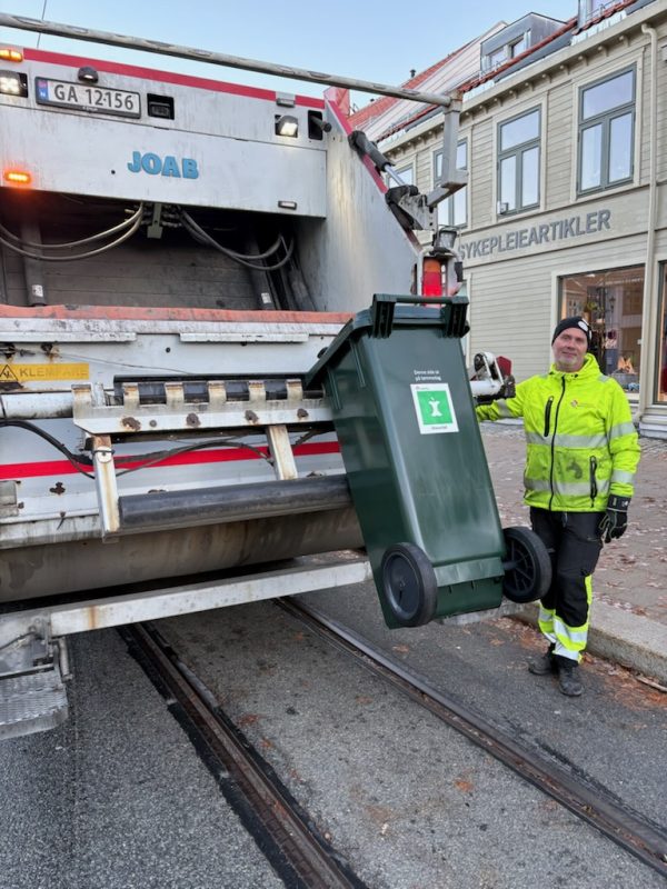 Når matavfall sorteres ut forventer vi at tyngden på restavfall vil reduseres. I dag har renovatørene gitt tilbakemelding på at det er akkurat det som har skjedd. 4,6 tonn restavfall ble samlet inn på Hospitalsløkkan – det er en reduksjon på 25 prosent og en fantastisk innsats av dere! Fortsett med den gode jobben! Sammen når vi målene om 65 % materialgjenvinning innen 2035.